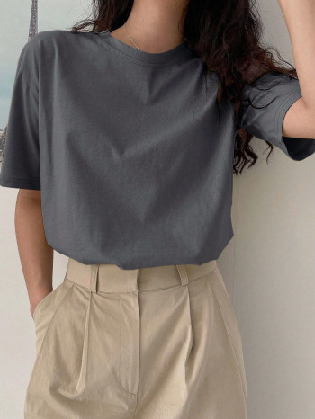 Kaos abu-abu bisa dibilang warna paling aman setelah putih dan hitam. Cocok untuk semua warna kulit dan bisa dipakai kapan aja tanpa terlihat berlebihan.